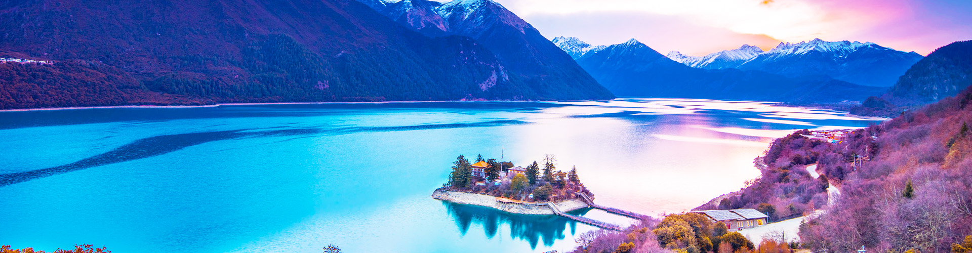 Auf der herzförmigen Insel im See steht der Cuozong-Gongba-Tempel der Nyingma-Rot-Sekte, der auf eine 1500-jährige Geschichte zurückblickt. Umgeben von dichten, ruhigen Wäldern scheint der Tempel den jadegrünen See zu bewachen. Dieses alte Kloster im Herzen des Sees lädt zum Nachdenken über die Geschichte ein und bildet zusammen mit den zwei 5500 Meter hohen schneebedeckten Gipfeln im Hintergrund eine atemberaubende Kulisse.